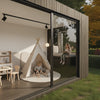Floor-to-ceiling windows with full visibility from the garden. Typically located metres from the house.